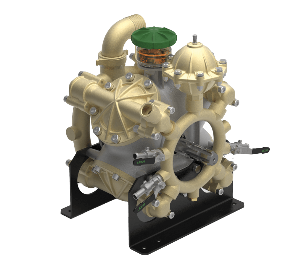 BETA-195 4-cylinder, high pressure, high volume diaphragm pumps are constructed of anodized aluminum, brass and stainless steel and have anodized aluminum, brass and stainless steel liquid handling parts. Includes mounting rails and 6005.08 control unit with pressure gauge. Simplicity of design and common parts allow for easy and economical maintenance.